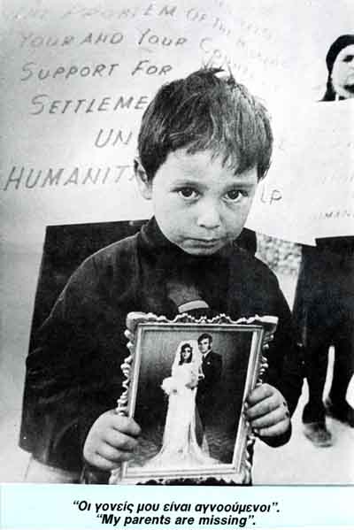 Το πρόσωπο της φωτογραφίας δεν είναι άλλο από το γιο του αγνοούμενου Σάββα Διάκου, Θεόδωρο Δημητρίου. Στην ασπρόμαυρη φωτογραφία αποτυπώθηκε πεντακάθαρα το δράμα που βίωνε η μητέρα του μικρού αγοριού, αλλά και οι άλλες οικογένειες των αγνοουμένων. Τραβήχτηκε έξω από την κινέζικη πρεσβεία σε μία από τις πολλές εκδηλώσεις των συγγενών των αγνοουμένων, ένα χρόνο μετά την εισβολή.