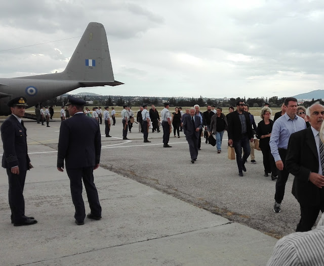Ο σκοτεινός ουρανός συμβάδιζε με της πονεμένες μορφές των συγγενών των ηρώων , ο βαρύς υπόκωφος ήχος του C-130 και το γοερό κλάμα των συγγενών ήταν το επιστέγασμα των συναισθημάτων όσων παρεβρίσκονταν εκεί βουβοί και αποσβολομένοι. Ανάμεσά τους και η Μαρία Καλμπουρτζή πρόεδρος της Πανελλήνιας Επιτροπής Συγγενών αγνοουμένων που πρέπει να συγχαρούμε και να εξάρουμε το έργο της.