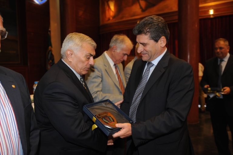 Ο ομιλητής Αντγος ε.α Γαληνός Αθ. παραλαμβάνει από τον Πρόεδρο του Συνδέσμου την πλακέτα με το έμβλημα του Συνδέσμου για την προσφορά του στην Ημερίδα Ειδ. Δυνάμεων της 10ης Ιουν 2017 στη Θεσ/νίκη.