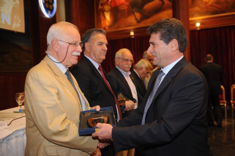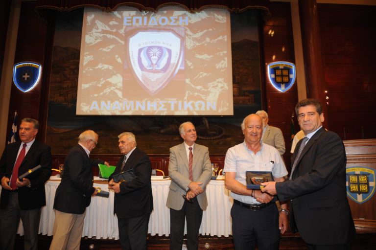 Ο ιατρός κ. Κύρκος Ευάγγελος, που διαμένει στην Θεσσαλονίκη, παραλαμβάνει από τον Πρόεδρο του Συνδέσμου την πλακέτα με το έμβλημα του Συνδέσμου «ΤΙΜΗΣ ΕΝΕΚΕΝ» για την προσφορά του ως Στρτης Κ/Δ της Α΄ ΜΚ, στην επιχείρηση «ΝΙΚΗ» το 1974 στην Κύπρο.