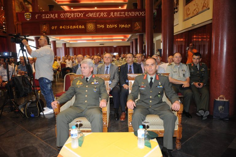 Από Αριστερά: Συντονιστής Ημερίδας Δρ.Νικολούδης Νικ., ομιλητές :δημοσιογράφος Βλάσσης Σάββας, Υπτγος ε.α Κοϊμτζόγλου, Σχης ε.α Κολοκοτρώνης, [ Δκτης Γ΄ ΣΣ/NRDC-GR Αντγος Μπίκος Δημ.], ομιλητές: Σχης ε.α Ροκκάς, Υπτγος ε.α Μαντζουράτος, Αντγος ε.α Γαληνός, Αντγος ε.α Σταμάτης και ο Πρόεδρος του Συνδέσμου Καταδρομέων & Ιερολοχιτών Μακεδονίας Αντγος ε.α Μήττας Δημήτριος.