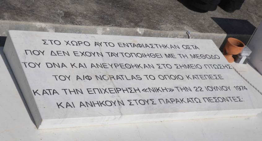 Επέβαιναν στο αεροσκάφος Noratlas το οποίο καταρρίφθηκε στο αεροδρόμιο Λευκωσίας από φίλια πυρά - Τα οστά δεν έγινε δυνατόν να ταυτοποιηθούν.