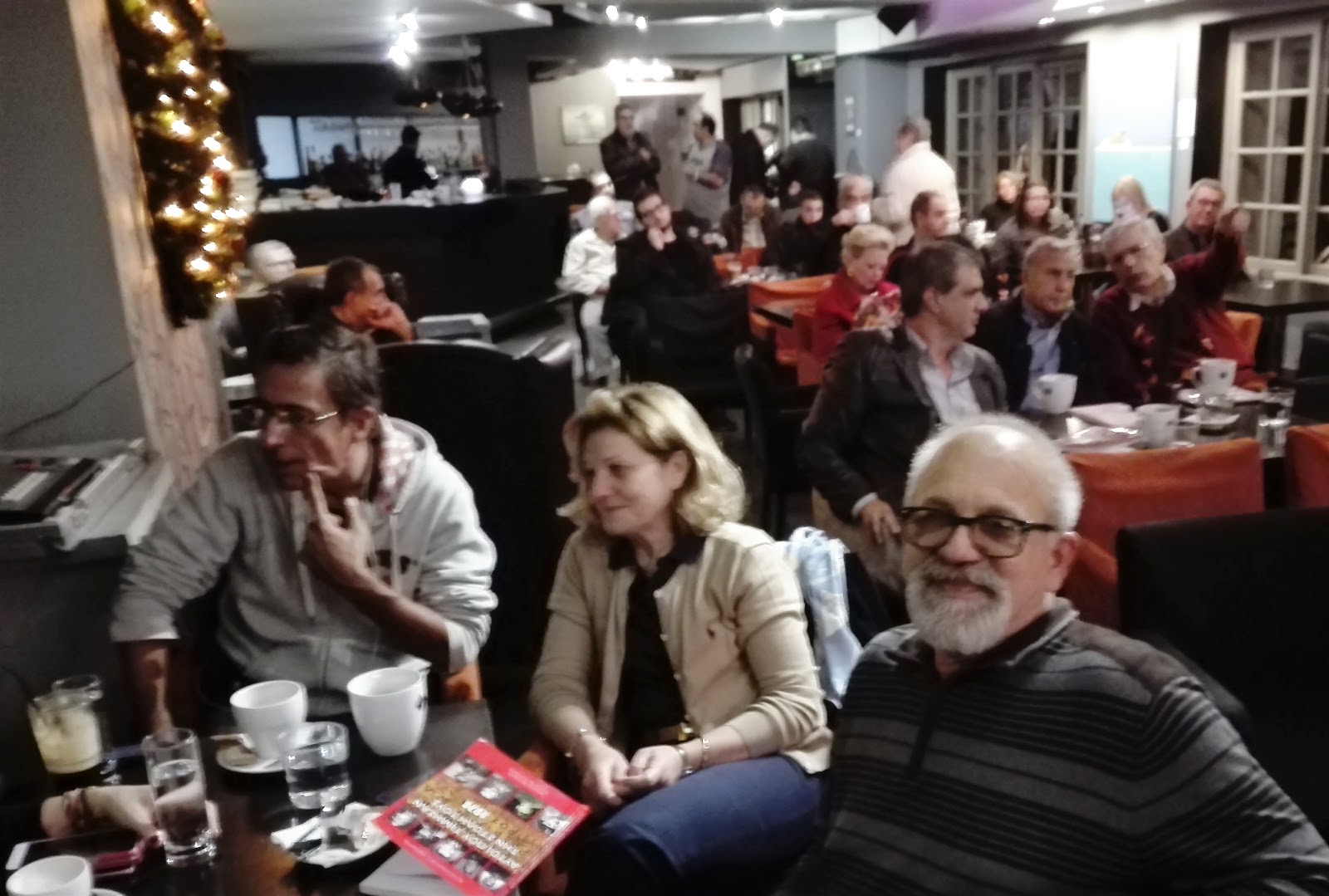 Την κατάμεστη αίθουσα υποδέχθηκε όπως πάντα ο φιλόξενος ιδιοκτήτης της Βασίλης Χατζηιακώβου, καλώντας αμέσως μετά τον εκδότη του βιβλίου Γιάννη Γιαννάκενα, ο οποίος μίλησε για τον μενα αλλά και για τη διαδρομή αυτής της τριλογίας που ολοκληρώσαμε μαζί για την Κύπρο του 1974.