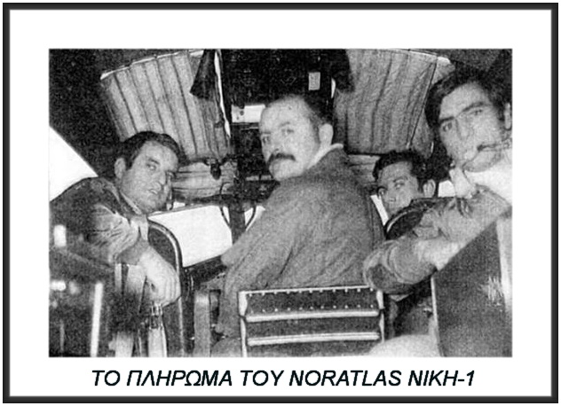 Το πλήρωμα του Noratlas 52-144 "Νίκη 8" στο πιλοτήριο του αεροσκάφους |