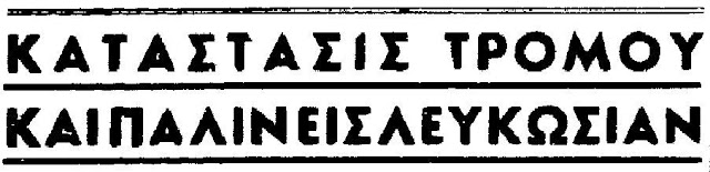 – Ένοπλοι Τούρκοι στασιασταί, τέως αστυνομικοί, συνοδευόμενοι υπό Άγγλου στρατιωτικού, επέδραμον εις το πανδοχείον Αγίου Αντωνίου εν Λευκωσία και απήγαγον τρεις Έλληνας Κυπρίους.