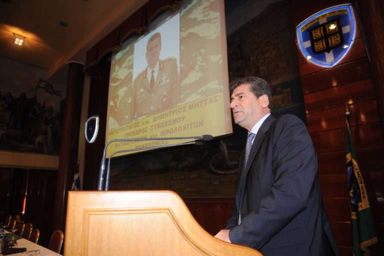 Ο Πρόεδρος του Συνδέσμου Καταδρομέων & Ιερολοχιτών Αντγος ε.α Μήττας Δημ. στην εναρκτήρια ομιλία της Ημερίδας Ειδικών Δυνάμεων της 10ης Ιουν 2017 στην αίθουσα τιμών της ΛΑΦ Θεσσαλονίκης.