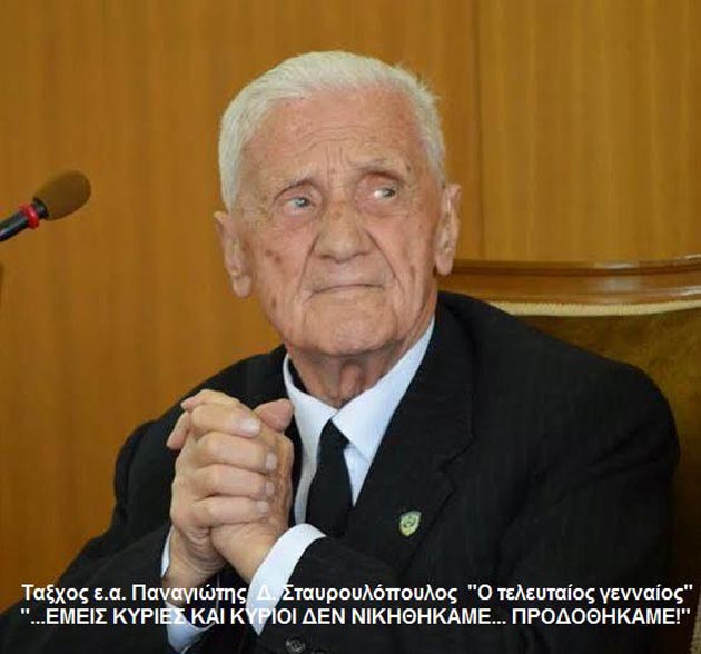 Σαμποτάρισαν μέχρι και την πρωτοβουλία να δοθεί τιμητικά στον κ.Ταξχο από το ΥΠΕΘΑ ο βαθμός του Αντιστρατήγου ε.α. για την προσφορά του προς την Πατρίδα...